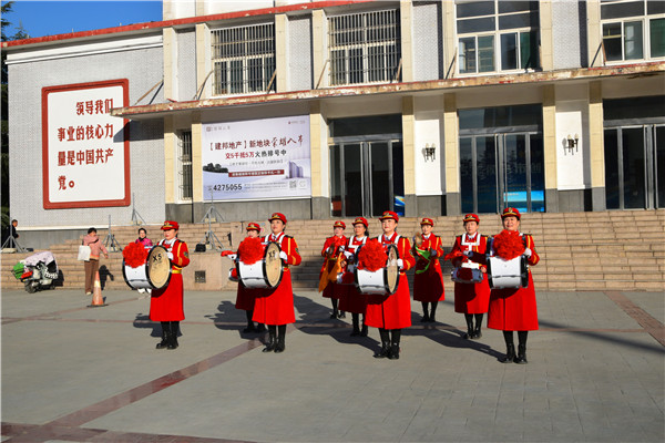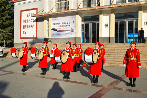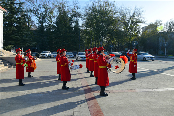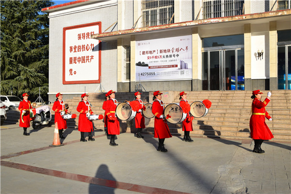 桥乡鼓舞队队长席玉惠指挥:军乐鼓表演 军乐鼓团队在认真做公益表演