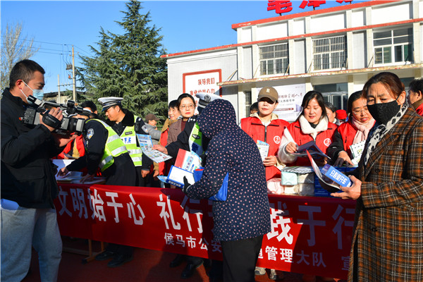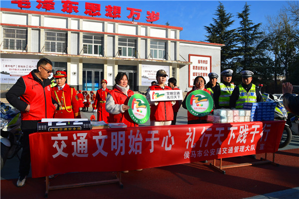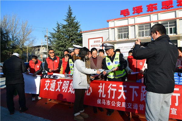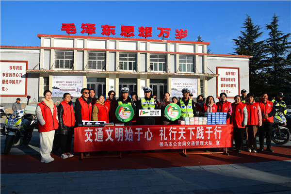 侯马市交警大队联合侯马市新时代文明实践文艺轻骑兵团队开展122“文明交通进校园”活动 携手共建平安路,全国交通安全日与您同行 12月2日是第13个全国交通安全日,今年的主题是“文明交通,你我同行。”在这个寓意着守法规、知礼让的特殊日子里,侯马市交通管理大队、高速民警、路东街道办事处和新民巷社区联合侯马市新时代文明实践文艺轻骑兵团队共同开展一场交通安全宣传服务活动。 大家首先在市委礼堂前给过往行人发放交通安全宣传单及礼品盒、抽纸等。同时,军乐鼓队献上了一场精彩纷呈的表演,吸引了众多的过往行人驻足观看和领取交通安全宣传单,观看了交通安全宣传板报。将“一盔一带”、“不闯红灯”、“拒绝酒驾”等交通安全知识以更加生动、有趣的形式深入人心。以通俗易懂的方式传递了文明出行理念,让新时代文明实践工作更接地气、更有实效。 接下来,他们走进校园开展活动。首先走进侯马市第二中学张贴交通宣传海报,紧接着走进浍滨小学开展了一场别开生面的“文明交通 你我同行”主题宣传活动。警民携手共筑平安路。为提升广大师生的交通安全意识和文明出行素养。 活动现场,侯马市交通管理大队宣传科科长郭峰、高速四支队3大队杨队长,分别上台详细通过展示交通标志牌、讲解典型的事故案例、并向学生们普及了道路交通安全法律法规。民警重点讲解了行人如何安全过马路,乘车系好安全带的重要性,以及未成年人骑自行车、电动车的相关规定,引导学生们不仅要自己遵守交通规则,更要争做家庭交通安全的监督员和宣传员。