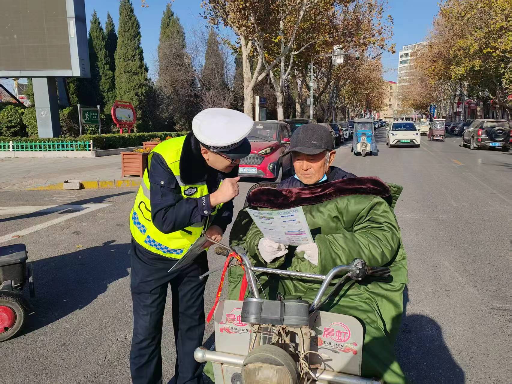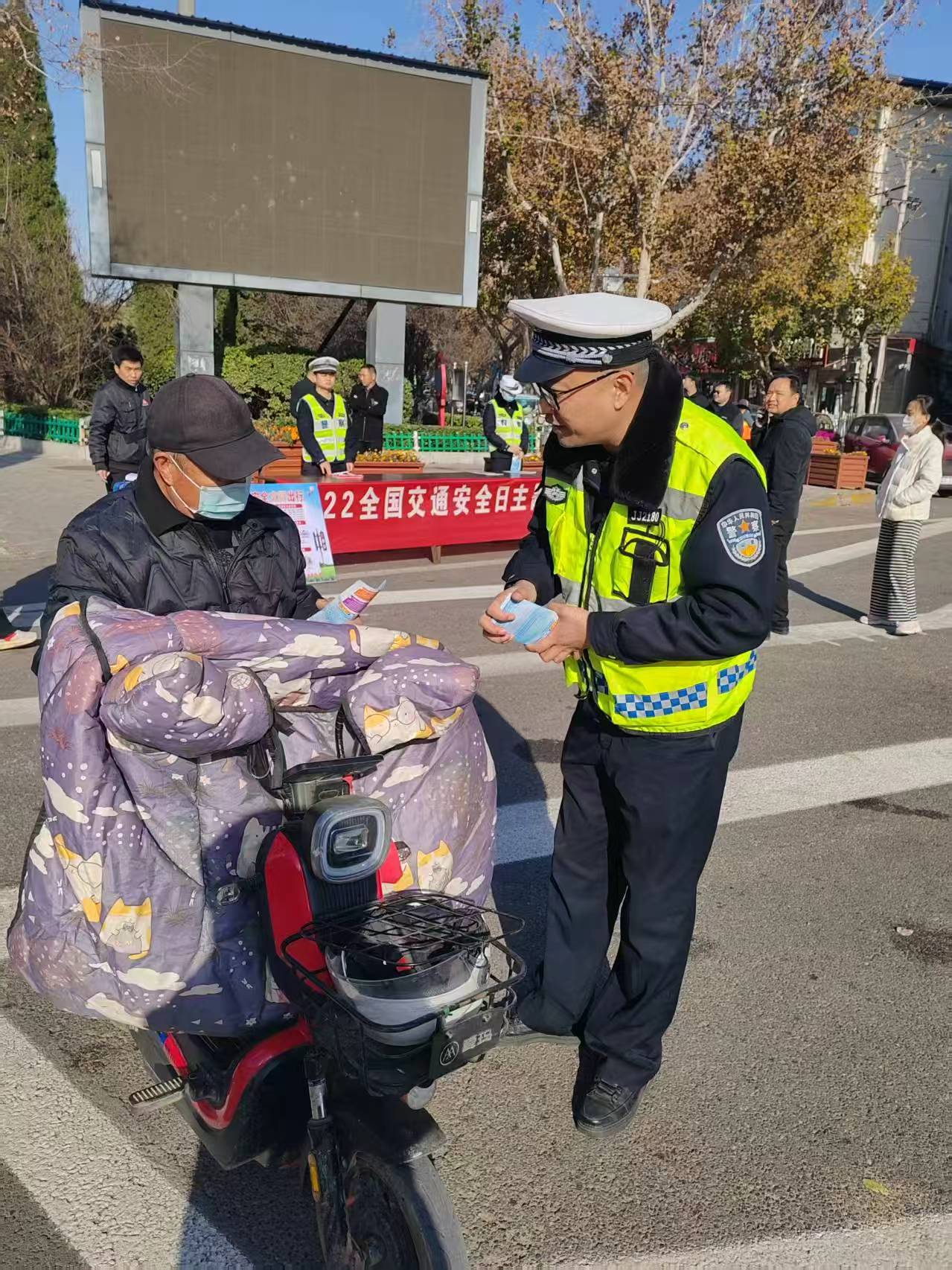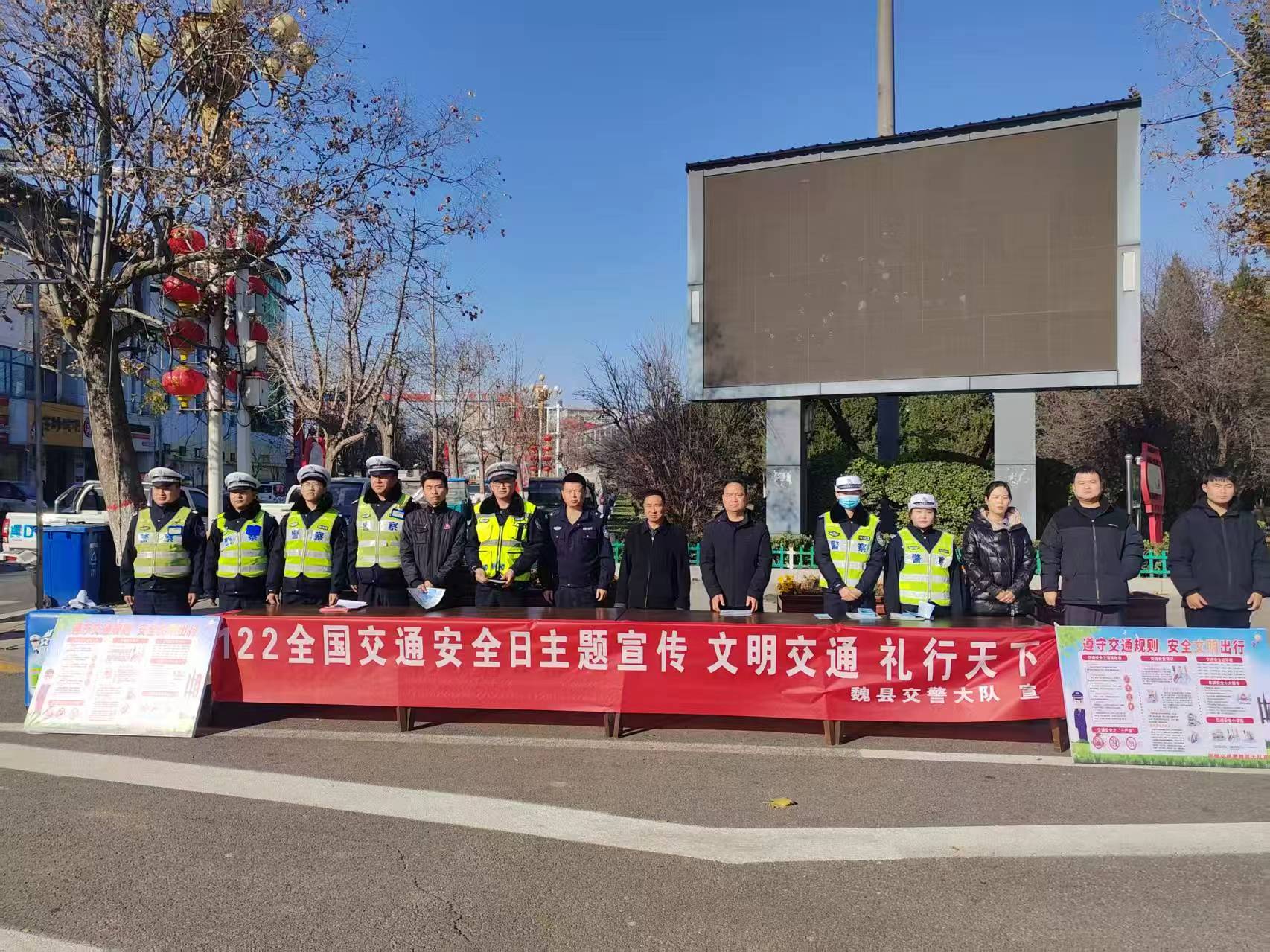 中国普法教育在线河北讯(游丙科) 今年12月2日是第十四个“全国交通安全日”,为进一步提高广大群众交通安全意识,努力形成人人抵制交通违法、人人践行文明交通、全社会共享文明交通的良好风尚,12月2日上午,邯郸交巡警魏县大队联合县文明办、县网信办、县教育局、县司法局、县交通运输局、县应急管理局在三角公园开展“文明交通、礼行天下”主题宣传活动。 期间,宣传人员向在公园散步、路过的群众发放宣传资料,以“见一人、打招呼、开展宣传”的方式,积极地向群众宣传讲解交通安全知识,重点讲解了酒驾、超速、超员、疲劳驾驶、不按交通信号灯行驶等交通违法行为的危害,倡导群众要时刻牢固树立安全第一的思想,严格遵守道路交通法律法规,杜绝交通陋习。 同时,民警结合广大群众常用的出行交通工具、出行习惯等特点,宣讲相关交通安全法规条款,遇有经常骑电动车出行的群众,民警向其发出安全提示,督促其出行时佩戴好安全头盔,进一步增强广大群众交通安全知识,提升交通安全防范意识。 活动当天共发放宣传资料800余份,解答群众咨询50余人次,进一步增强了广大人民群众的遵守交通法规意识及文明礼让出行意识,有效预防和减少了交通事故的发生,营造了浓厚的交通安全宣传氛围。