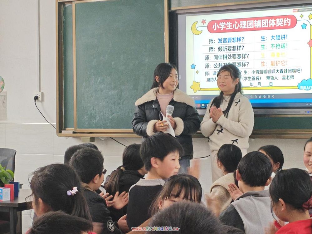 心沐暖阳 自信成长 本网讯(记者:潘华 通讯员:杨宏远、周智琳)为助力孩子们塑造阳光心态、发掘自身闪光点,1月16日下午,一场充满温暖与力量的心理健康团辅教育活动在罗城镇横坑小学温馨开展。万载县政协副主席、国家二级心理咨询师辛永红,县财政局副局长、国家二级心理咨询师辛云一行,为二年级和四年级的同学们分别带来《我的小小闪光点》与《阳光自信,快乐出发》主题活动,用趣味互动为孩子们的心灵成长保驾护航。 二年级:解锁闪光点,勇敢秀自己 在二年级教室,辛永红老师以“自我探索”为核心,开启了一场别样的成长之旅。活动伊始,辛老师为孩子们分发红笔、卡纸和星星贴纸,鼓励大家认真梳理自身的优点与不足,在卡纸上精心制作专属的“闪光卡片”,并用星星贴纸为自己的闪光点郑重“盖章”。一张张卡片上,稚嫩的字迹记录着孩子们的真诚:“我乐于助人”“我画画好看”“我上课认真听讲”,每一个闪光点都值得被看见、被肯定。 随后,一场以变色龙娃娃为道具的“击鼓传花”游戏让教室瞬间充满欢声笑语。音乐停下时,拿到娃娃的同学鼓足勇气站上讲台,分享自己的小优点。从羞涩低语到大声表达,孩子们在全场热烈的掌声中收获了自信与认可,也学会了欣赏自己的独特之处。