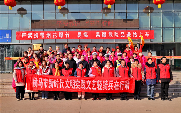 (本网山西讯:于妮妮 秦明忠)为切实做好2026年春运道路交通安全管理工作,为侯马群众新春佳节创造一个平安畅通的道路交通环境,2月2日上午9:30分,侯马西客运站举行了2026年“文明交通、安全同行”主题春运启动仪式。文明实践文艺轻骑兵团队应邀到现场开展文艺演出,助力2026年春运启动。