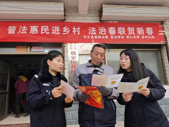 中国普法教育在线河北讯(游丙科) 春节将至,为了大力弘扬法治精神,营造浓厚的新春法治氛围,2月4日,平乡县司法局联合县委政法委、县法学会、县公安局等部门以及5名书法家走进魏家庄村,以“普法惠民进乡村 法治春联贺新春”为主题给本村群众送上了一份融传统文化底蕴与法治元素于一体的特色文化厚礼,向群众普及法律。 活动现场一派热闹景象,书法家们凝神聚力、挥毫泼墨,一幅幅融法治内涵与新春吉庆于一体的春联跃然纸上。“骏马奔腾迎盛世 新春欢乐度新年”“法治清明天下稳 春风浩荡世间公”等法治春联,将法治理念与新春祝福巧妙融合,不仅增添了喜气祥和的新春气氛,还将法治文化传递到寻常百姓家中,营造出抬头见法、进门学法的法治氛围。现场普法志愿者及工作人员还给群众宣传宪法、民法典、法治宣传教育法、人民调解法、法律援助法、反诈等日常法律法规知识,解答法律咨询,发放宣传资料,让大家在翰墨飘香中感受法治温度。识,传递法治温暖。 据悉,本次活动现场累计为群众书写并赠送春联800余副,发放法治宣传折页及法治宣传手提袋、小围裙3000余份。此次活动有效地把普法宣传与传统民俗相结合,将法治精神融于春联之中,让尊法、学法、守法、用法的意识在村民心中落地生根。