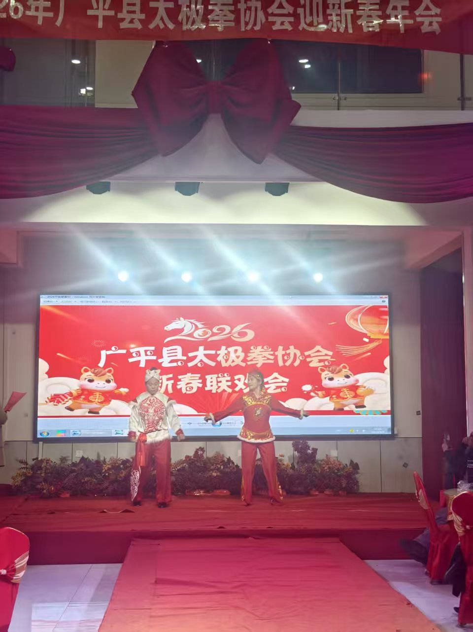 中国普法教育在线河北讯(游丙科) 骏马迎春,万象更新。邯郸市广平县太极拳协会2026年新春联欢会在此隆重举行。 联欢会在《八法五步》集体表演中拉开序幕,整场晚会节目形式多样,内容丰富,既有传统套路的精湛演绎,也有创新编排的精彩呈现。节目有三句半《说说咱协会》,太极推手,二郎拳、广场舞,戏剧,魔术等。 活动现场还穿插了有趣的抽奖环节,台上台下互动频繁,央视《星光大道》冠军歌手周现军到场演唱祝贺,气氛热烈温馨。 广平县太极拳协会会长王献朝表示:“此次联欢会既是对过去一年协会工作的总结与展示,也是全县太极同仁的一次大联欢、大交流,让太极拳这项古老的国粹惠及更多民众,为“健康广平”建设注入更多太极能量 ”。 据悉,广平县太极拳协会连续十八年举办了十八次新春联欢会,连续十四年成功举办了十四届武术·太极交流大会,连续十年举办暑假少儿太极拳义务培训班十期。 联欢会伴随着《难忘今宵》的音乐声中圆满落下帷幕。 此次活动的成功举办,不仅营造了欢乐祥和、健康文明的新春氛围,更坚定了广大太极拳爱好者传承推广太极文化的信心,开启了广平县太极拳运动发展的新篇章。
