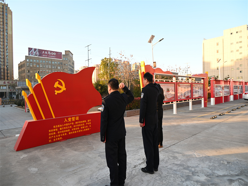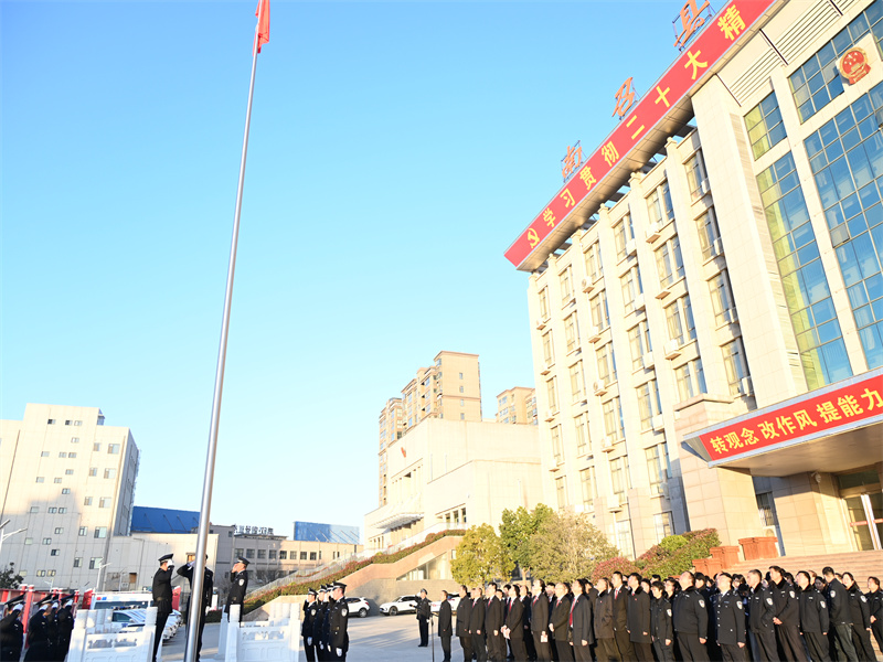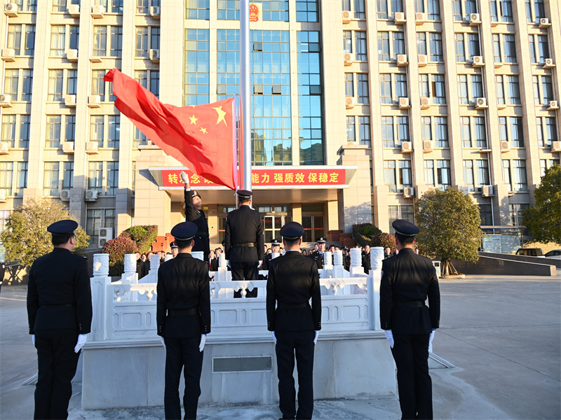 为进一步激发全体干警爱国主义情怀和干事创业热情,2025年1月6日,南召县人民法院举行新年“升国旗、党员过政治生日”活动。南召法院党组书记、院长赵康出席活动并讲话,党组副书记、副院长白丞博主持活动,全体干警参加活动。 上午8时,升旗仪式正式开始。法警队护旗手精神饱满、步伐矫健,护卫着五星红旗走向国旗台。在庄严的国歌声中,鲜艳的五星红旗冉冉升起。全体干警满怀敬意向国旗行注目礼,表达对祖国的无限热爱。 接着,进行的是党员过政治生日活动。党组成员、政治部主任李鹏首先介绍了曾于1月份入党同志的基本情况,并为他们送上祝福;党组书记、院长赵康向曾于1月份入党的党员发放了政治生日贺卡。在机关党委副书记、综合办公室主任李怡昕的领誓下,党员干警举起右拳,重温入党誓词:“我志愿加入中国共产党,拥护党的纲领,遵守党的章程……”重温入党誓词、再忆入党初心,激励了党员干警们进一步坚定理想信念,永葆对党忠诚的政治品格。 最后,党组书记、院长赵康作总结讲话。赵康院长回顾总结了2024年南召法院各项工作所取得的成绩,对干警们的辛勤努力与辛苦付出给予了充分肯定,并寄语同志们把握好当前南召法院各项工作突飞猛进的良好态势,在崭新的2025年,以起步即加速、开局即冲刺的精、气、神,全力抒写南召法院干警奋进之志、赤子之心,奋力绘就2025年南召法院高质量发展新篇章。