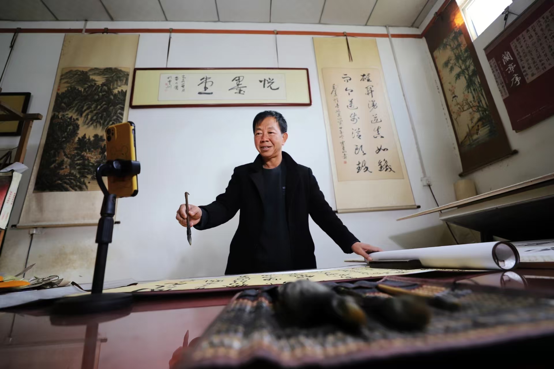 中国普法教育在线河北讯【游丙科】左利涛,笔名左力滔,平乡县左冯马村人,拥有退役军人、农民、书法家、网络名人四个身份“标签”,是中国老年书画研究会会员、河北省书法家协会会员,自媒体账号总粉丝量4万多人,单件作品最高播放量突破1000万次。 从部队退役后,左利涛自食其力,开始自主创业。1995年,他投身刷写墙体广告行业,结识了一帮爱好写字绘画的朋友,从此和书法艺术结下了不解之缘。那年,他第一次登上讲台,给本村孩子讲书法、教写字,开始了公益书法之路。 多年来,他经常走进学校、村庄、社区、企业,给孩子们面对面讲书法、手把手教书法,为居民群众、职工农民写福字写春联,被评为邢台市书法惠民公益活动先进个人,被县文联授予“书法教育优秀工作者”荣誉称号。 随着技艺日渐精湛,左利涛的作品在赛事上频频亮相,获评河北省第二届农民书画展三等奖等荣誉奖项,入展河北省刻字艺术展等专业展览。2016年,他在村里建起占地100平方米的工作室,注册成立了平乡县悦墨堂书画院。但凡有群众过来求字,他都会慷慨答应,对于困难群众和大中小学生一概免费赠送。 2019年,左利涛开设“悦墨堂”自媒体账号。他通过现场直播及视频作品,传播书法艺术、讲授书法知识、指导书写技巧,弘扬书法国粹艺术,积极传播网络正能量,被抖音平台加V认证为“书法家”,被县委网信办评为“平乡好网民”。 为了外出写字方便,左利涛专门购买了一辆移动折叠书法车,还制做了一个“执笔结善缘,书法万里行”道旗,上面印着:弘扬民族艺术,传播精神文明,心系万里山河,服务百姓人家。许多网友给他的视频作品点赞、评论,有位网友留言:小车一拉,祝福送万家! 因为热爱,所以坚持。“有人问我为什么要做写字这种公益呢?我感觉书法一直以来是一个小众,我走进乡村,是想尽自己微薄之力,让书法走进大众,让精神食粮充盈每一个家庭。”这是左利涛抖音视频作品上的文字,也是他灵魂深处最真情的告白,更是他平凡人生中不平凡的追求与信念。 微信扫一扫,阅读更方便^_^ |