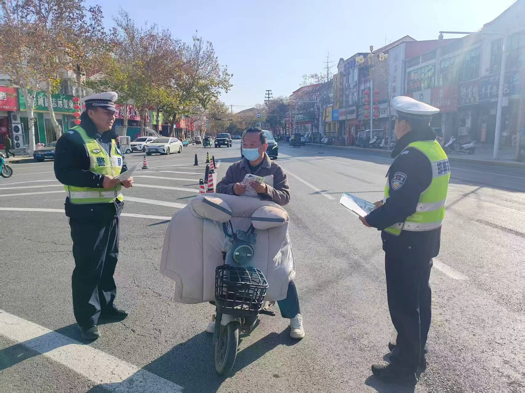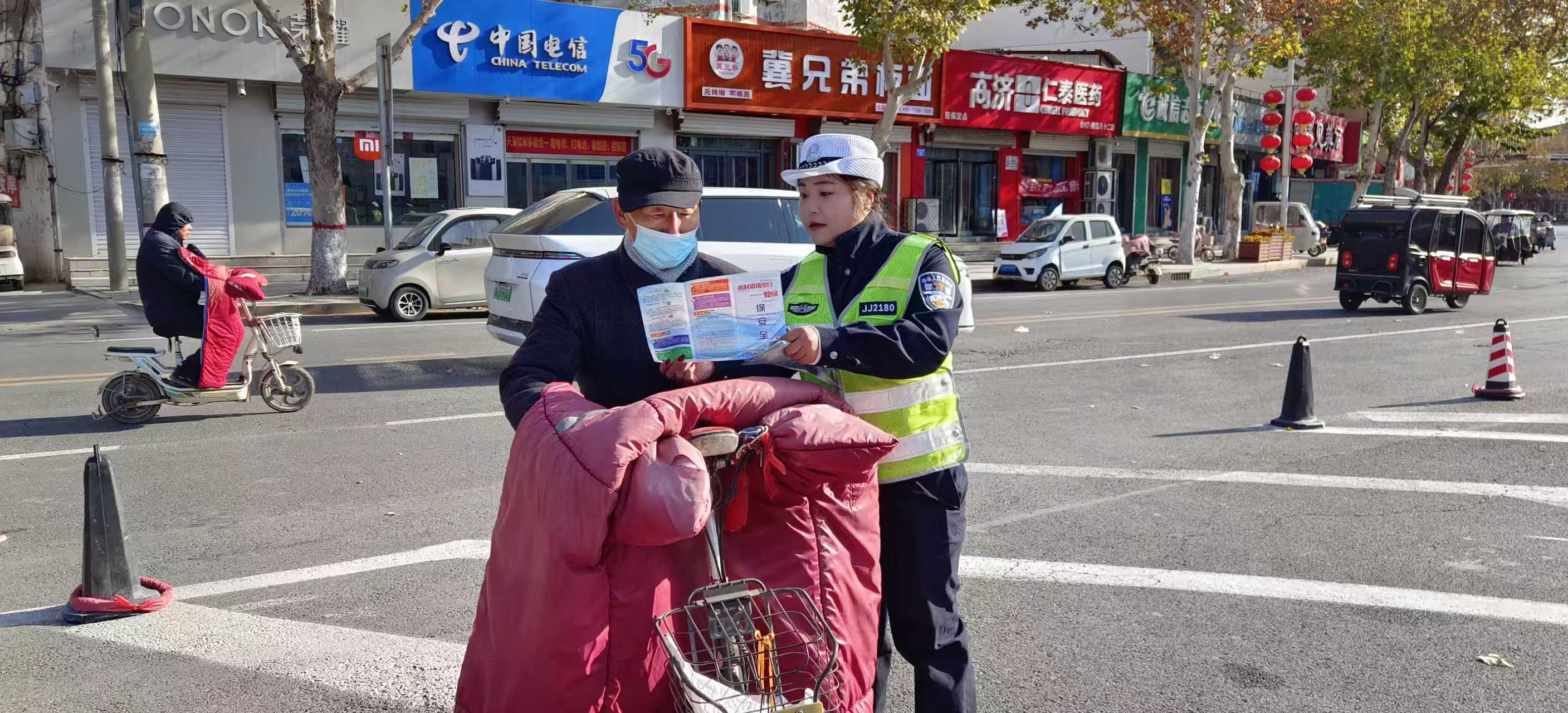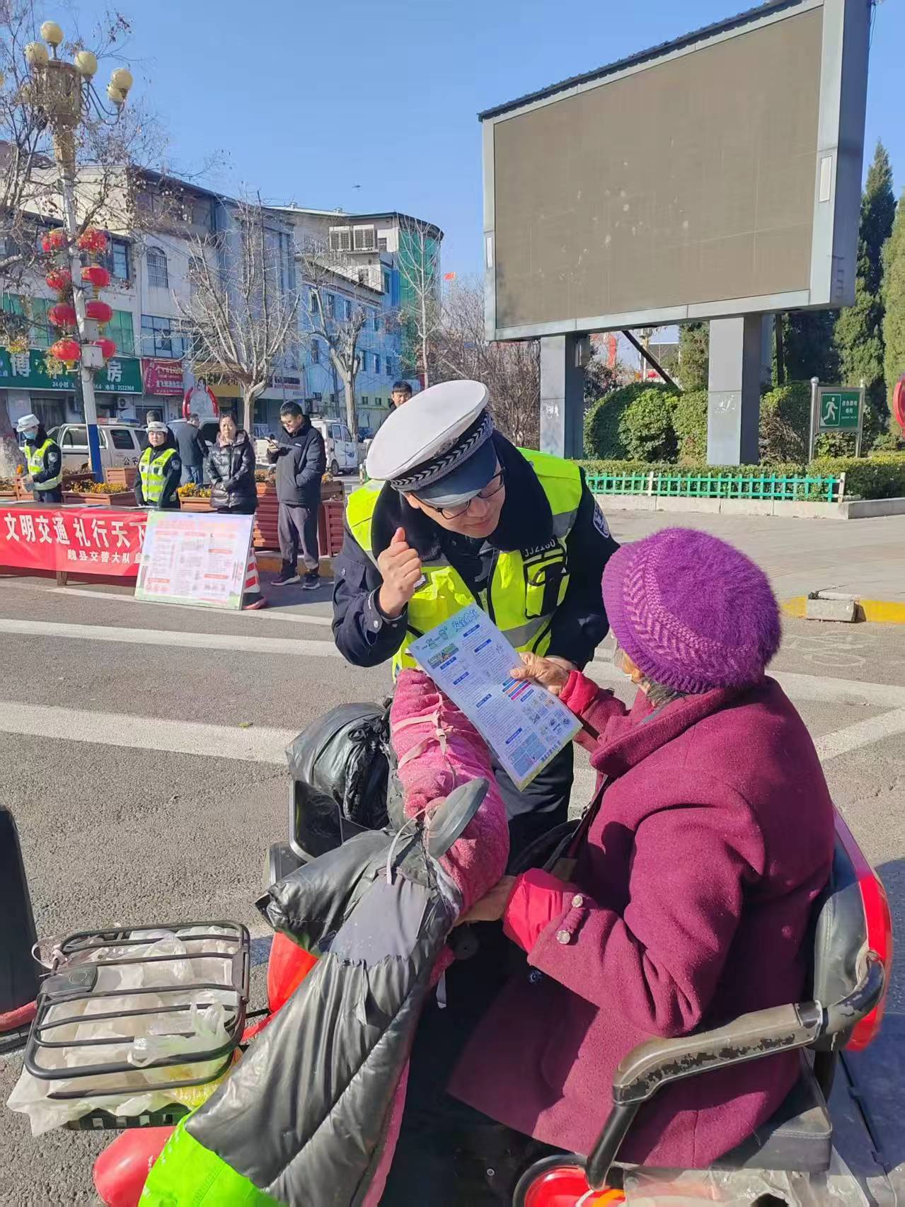 中国普法教育在线河北讯(游丙科) 今年12月2日是第十四个“全国交通安全日”,为进一步提高广大群众交通安全意识,努力形成人人抵制交通违法、人人践行文明交通、全社会共享文明交通的良好风尚,12月2日上午,邯郸交巡警魏县大队联合县文明办、县网信办、县教育局、县司法局、县交通运输局、县应急管理局在三角公园开展“文明交通、礼行天下”主题宣传活动。 期间,宣传人员向在公园散步、路过的群众发放宣传资料,以“见一人、打招呼、开展宣传”的方式,积极地向群众宣传讲解交通安全知识,重点讲解了酒驾、超速、超员、疲劳驾驶、不按交通信号灯行驶等交通违法行为的危害,倡导群众要时刻牢固树立安全第一的思想,严格遵守道路交通法律法规,杜绝交通陋习。 同时,民警结合广大群众常用的出行交通工具、出行习惯等特点,宣讲相关交通安全法规条款,遇有经常骑电动车出行的群众,民警向其发出安全提示,督促其出行时佩戴好安全头盔,进一步增强广大群众交通安全知识,提升交通安全防范意识。 活动当天共发放宣传资料800余份,解答群众咨询50余人次,进一步增强了广大人民群众的遵守交通法规意识及文明礼让出行意识,有效预防和减少了交通事故的发生,营造了浓厚的交通安全宣传氛围。