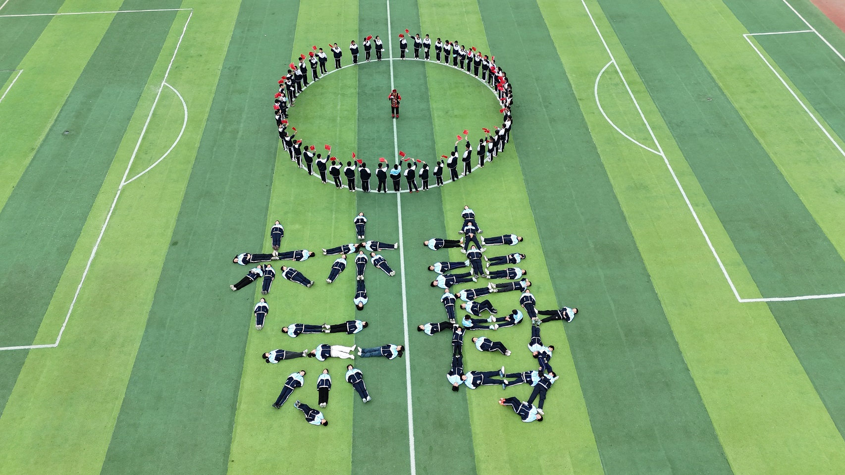 图片说明 中国普法教育在线广西桂林全州讯:(通讯员:邓琳)12月4日,全州县桂北初中100多名学生在校园操场上摆出“禁毒”字型,以实际行动增强识毒、防毒、拒毒意识与自我保护能力,营造健康无毒的校园环境。 (邓琳 摄)