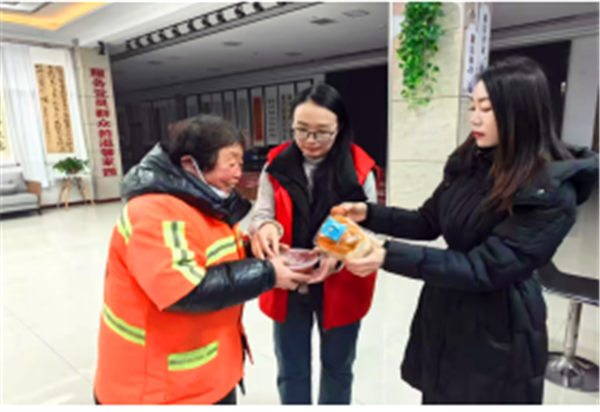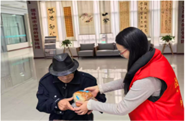 与此同时,社区工作人员为辖区困难群众送上热粥与面包,叮嘱他们注意冬日保暖,保重身体。牛叔感动地说:“每年腊八社区都想着我,这粥不仅好喝,更暖到了我心坎里!”一碗碗腊八粥,承载着社区对特殊群体的牵挂与关怀,让困难群众在寒冬中感受到浓浓的节日氛围与“家”的温暖。