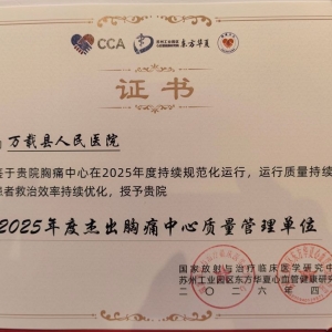 本网讯(记者:潘华 通讯员:涂小明)4月2日—4月4日,第十五届中国胸痛中心大会在深港两地联合召开。会上,宜春学院第一附属医院 万载县人民医院胸痛中心顺利通过国家级复评,认证有效期延长至5年;历经网审、飞检等严谨环节,最终斩获国家胸痛中心总部授予的质控杰出单位奖(金奖),本次江西省获此殊荣的医院仅3家。 自2022年首次通过国家级认证以来,该院胸痛中心始终坚持常态化规范运行与精细化质控管理,持续整合区域医疗资源,全面提升急危重症胸痛患者协同救治能力。始终坚守“时间就是心肌,时间就是生命”的救治理念,打通胸痛救治起跑“最后一公里”,积极推进基层卫生院胸痛单元标准化建设。2025年,中心核心质控指标D2W时间仅48.3分钟,再创救治效率新高。 未来,宜春学院第一附属医院 万载县人民医院将持续精进,不断优化高效规范的胸痛救治体系,继续加强胸痛中心能力建设,全力守护人民群众生命健康,为百姓健康保驾护航。 微信扫一扫,阅读更方便^_^ |