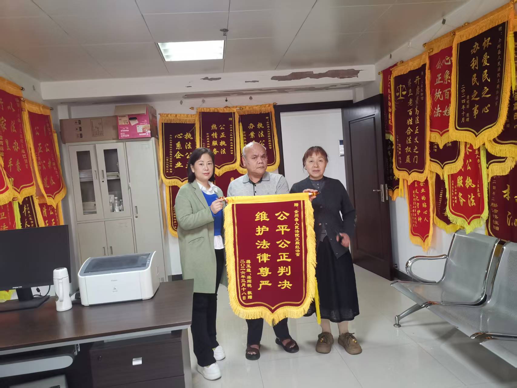 王殿红:锦旗映初心 公正暖人心全州讯(全州县融媒体中心记者 邓琳)从事法官工作36年以来,全州县人民法院法官王殿红始终锚定“公正司法、司法为民”工作主线,以“如我在诉”的理念办好每一起案件,用专业高效的司法服务回应群众期盼。近五年来,他先后收到企业、群众赠送的锦旗超过70面,每一面鲜红的锦旗都镌刻着“公正廉明”“为民解忧”“高效执行”等滚烫字样,背后是一个个案结事了人和的动人故事,既是群众对他司法工作的最高褒奖,更是他践行初心使命的生动注脚。 ◇跨越地域的“特殊谢礼”(小标) 在司法实践中,当事人向法官赠送锦旗表达感谢并不鲜见,但“胜败双方”都主动为法官送来锦旗的事,则格外引人注目。 2021年4月26日,全州县人民法院出现了一幅原被告双方为法官赠送锦旗的动人场景。 原告阜阳市某物流有限公司诉被告上海某储运有限公司、某财产保险股份有限公司机动车交通事故责任纠纷案中,原告诉讼标的款为1273928.18元。王殿红法官通过与原被告反复沟通,采取简易程序审理判决结案,判决二被告各赔偿原告损失1002000元、163928.18元。判决生效后,二被告均主动履行了生效判决确定的给付义务,且二被告双方均派员工乘飞机专程当面向案件主办人王殿红赠送了锦旗。 二败诉方现场表示:“虽然官司我们输了,但王法官判得公平、讲得透彻,我们打心底里服气。”本案生动诠释了“案结事了、政通人和”的司法追求,展现了司法裁判在化解矛盾、促进和谐方面的深层价值,当年被广西壮族自治区高级人民法院评定为“十佳百优”庭审案例。 ◇面面锦旗映初心(小标) 法治是最好的营商环境。一直以来,全州县人民法院坚守“司法为民、公正司法”初心,聚焦优化法治化营商环境,依法保护市场主体合法权益。 近日,三名当事人将一面上书“捍卫公平正义 优化营商环境”的鲜红锦旗,送到承办法官王殿红手中,致谢其公正高效办案。 事情的原委是这样的,唐某等5个自然人于2025年11月20日诉被告曹某及某保险公司等机动车交通事故责任纠纷案。该案判决书一审生效后,被告保险公司的两级共三名负责人当面送来了感谢锦旗,案件的成功判决,取得了良好的法律效果、政治效果和社会效果。 近五年来,王殿红先后获得案件当事人送来的锦旗超过70面。这一面面鲜红的锦旗,体现了当事人对司法公正的由衷认可,背后更有王殿红一段段用情用心用力司法为民、高效履职的暖心故事和为民初心。 ◇“四心”工作让当事人舒心顺心放心(小标) 公正与效率是人民法院永恒的工作主题。36年的法官生涯,工作中王殿红坚持做到“四心”:与群众沟通有“耐心”,动之以情,晓之以理,不仅做到案结事了,更解开了群众的心结;帮助当事人排忧解难有“诚心”,真心实意地从当事人角度出发,想人所想,急人所急,做好人民满意的公仆;平息双方矛盾纠纷有“恒心”,抓住矛盾纠纷症结所在,汇聚多方合力,持之以恒为双方架起沟通桥梁;审判案件是非曲直有“公心”,始终践行法律效果与社会效果并重,实体与程度并重,在司法活动全过程中体现公正与效率。 36年来,王殿红办结的案件近5000件,用公正审判守护群众合法权益,切实将矛盾纠纷化解在基层,让人民群众在每一个司法案件中都感受到了公平正义,生动地诠释了“实干为要、创新为魂,用业绩说话、让人民评价”这一政绩观。 (编辑:唐泽平 核发:邓明平) 微信扫一扫,阅读更方便^_^ |