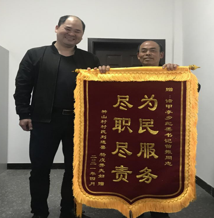 湖南普法中心讯:【朱海荣 唐国平 朱小强 】“真的太感谢你了曾书记,没有你的全力帮助,我这替村里在信用社的5万元借款不知道什么时候才能拿得到,曾书记,你就是我的恩人呐”,2021年4月26日,诸甲亭乡神山村村民刘连喜为乡纪委书记送上“为民服务 尽职尽责”的锦旗。 据悉,2013年时,诸甲亭乡原石桥村(后并入神山村)为维修村内2321米灌溉水渠,经村两委商议,由时任村监会成员刘连喜以个人名义向昭阳农商银行借款5万元,用于填补维修灌溉水渠相关缺口资金。2017年并村后,刘连喜的因公借私款问题就成为遗留问题,刘连喜虽多次和神山村委反映,但一直未得到妥善解决。2020年4月,刘连喜抱着试一试的心态,向诸甲亭乡纪委反映了该问题,乡纪委书记曾振在得知情况后,立即组建工作专班对欠款进行核实并追缴,并于2020年底将欠款全部追缴到位。 近年来,诸甲亭乡党委、政府秉承“不忘初心、牢记使命”宗旨,牢固树立以人民为中心的思想,倾心关切来访群众,为群众排忧解难,积极调处解决民生领域的实际问题,为群众提供了更好的服务和环境,得到群众的认可,维护了党和政府的形象,树立了良好的公信力。 (图为诸甲亭乡神山村村民刘连喜为乡纪委书记曾振送上锦旗) 微信扫一扫,阅读更方便^_^ |