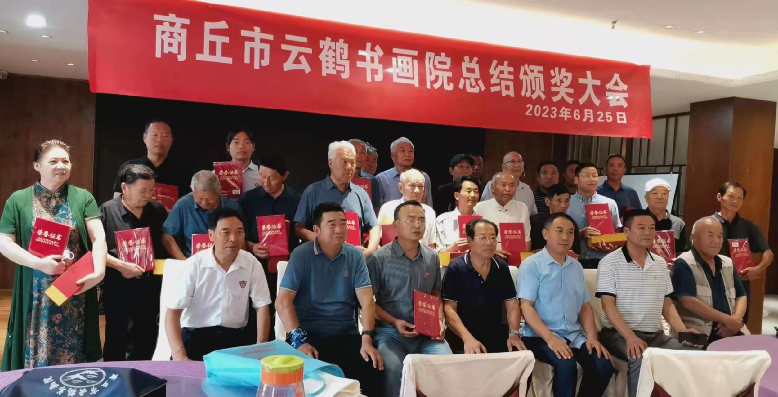 商丘市云鹤书画院年会暨总结颁奖大会在翔宇大酒店召开 中国普法教育在线网河南商丘讯【编辑:丁雪深 文/图 赵子敬】 6月25日上午,翔宇大酒店四楼会议大厅人头攒动,座无虚席,商丘市云鹤书画院年会暨总结颁奖大会在这隆重召开。在没开会之前,举办了一个书画笔会,各位艺术家一展风彩,铺开宣纸,挥毫泼墨,笔走龙蛇,彩绘飘逸,现场创作一副副遒劲高雅的书法作品近百副,观众争相收藏,也迎来书友及书法爱好者连声叫好。 在台上就座的由市原政协文史办主任赵杰,书画院理事会主席皇甫鲜华,书画院院长金万冬,副院长李春启,商丘帮帮集团董事长、云鹤书画院名誉院长牛仁领,郑州大学教授邢天才和台下院士80多名参加了今天的会议。大会由书画院秘书长赵子敬主持。 商丘市云鹤书画院自成立一来,得到各级人民政府的大力支持和认可,得到社会各界的一致好评。本院是在市民政局登记注册的非企业公益书画院。其宗旨就是宏扬和传承中国历史文化,创新发展我国的国粹艺术,服务于社会大众及弱势群体。经过十几年的发展壮大。现有院士400多名,国家中书协会员就有50多名。每年在全国各类书画大赛中我们的院士积极投稿,拿到了奖杯奖牌和荣誉证书。给云鹤书画院增了光,添了彩,也给自己带来增光添彩的一面。书画院被受于“全国书画公益优秀先进组织"光荣称号,被市民政局慈善总会授予“公益慈善"先进团体。 首先由商丘市原政协文史办主任赵杰致辞,他给大家介绍了商丘是一个历史悠久,圣贤倍出地方,殷商文化就起源于商丘,让殷商文化这块金字招牌在咱豫东大地发扬光大,让殷商文化走向全国,走向世界。我国的书画艺术是国粹,我特意编写一本巜历代书画卷》一书,有机会每人送一本观看欣赏。理事会主席皇甫鲜华在致辞中说:我院在金万冬院长坚强领导下,在疫情当中,不畏风险,一步一个脚印的向前走,书画院照样运转不误,组织院士走进基层,社区和乡村,让书法艺术更贴近人民大众。希望大家再接再厉,更创辉煌。商丘帮帮集团董事长,书画院名誉院长牛仁领作了致辞,郑州大学教授邢天才也发表了热情洋溢的讲话。金方冬院长作了大会总结:疫情三年,我院受到冲击,但毅然不畏艰难,组织参加商丘电视台组织的抗疫书画义写活动,向睢阳区娄店乡,梁园区谢集镇为低保护、五保户送爱心奶,黑芝麻糊等,走进社区义写春联,日報社组织的义写春联拍卖会,会上所卖春联的钱捐赠给儿童患者,让他早日恢复健康,所做的一切都是公益活动。金院长既指出了成绩,找到不足,为书画院再上一个台阶奠定良好的基础。副院长李春启作了书画院下一步工作安排。 微信扫一扫,阅读更方便^_^ |