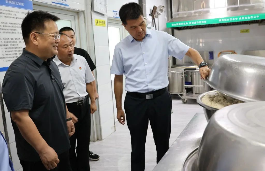 邢玉富一行实地查看了学校餐厅环境卫生、食品安全制度落实、学生就餐安排等管理细节,深入到操作间,对食堂仓储、从业人员资质、后厨卫生管理、每日食品留样、餐具消毒、食材采购、食品加工等关键环节进行了认真细致地询问和交流。学校校长宋清民介绍了学校落实食品安全主体责任、秋季开学等相关工作。