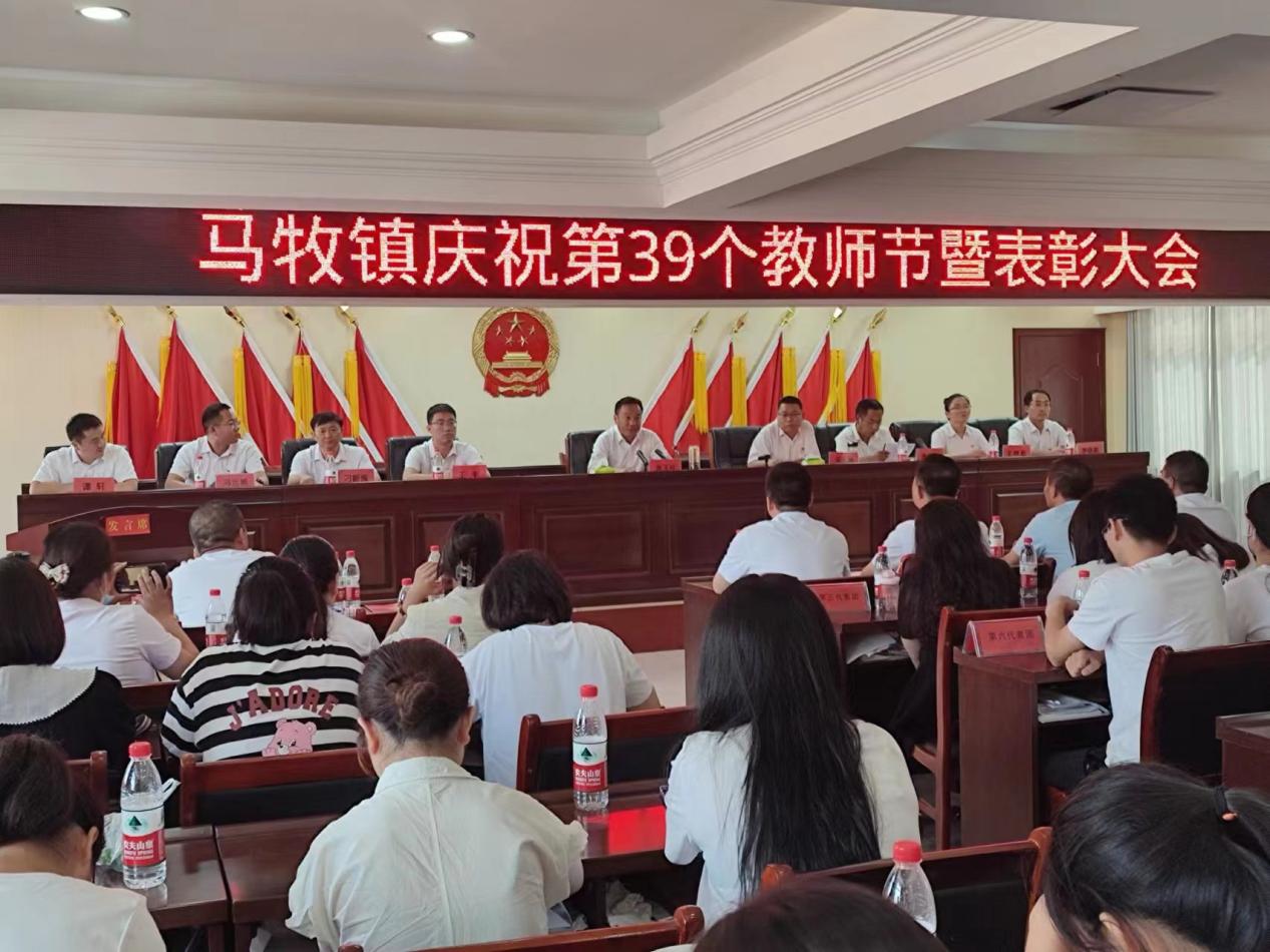 | 永城市马牧镇召开教育系统表彰大会 中国普法教育在线网河南讯(丁雪深 张池清) 为深入学习贯彻习近平新时代中国特色社会主义思想和党的二十大精神,大力弘扬崇高职业精神,在秋季新学期和第39个教师节到来之际,9月9日上午,在政府会议室召开“马牧镇庆祝第39个教师节暨表彰大会”,镇全体班子成员和教育系统全体教职工180人参加。 笔尖耕耘三尺坛,一身正气育桃李。表彰会上,中心小学等7个星级学校,凭借“团结、奉献、守正、创新”理念,在立德树人道路上因勇于争先享受荣誉。李文东等69名先进个人,是全镇教育系统思想领航、主动担当、强化落实杰出的行业典型。他们中有以单位为家、舍小家为大家的小学校长;有任劳任怨、精益求精、诲人不倦的普通教师;有责任在肩、常思进取、不计名利的贴心班主任;有勤勤垦垦、无怨无悔、甘于奉献的行政工作者。……他们有一个共同的特点:扎根基层、默默奉献。他们坚定决心意志、埋头苦干实干、担当教育重任,在平凡的岗位上做出了不平凡的业绩。以坚守演绎精彩,用爱心静待花开;以责任抒写担当,用拼搏创造辉煌,他们用言行诠释“为人师表”的人格内涵。在他们身上,体现了“躬耕教坛,强国有我”的责任担当,反映了基层一线教育工作者,传承师德师风育新人和艰难困境亦奋进、用行动书写人生价值的感人篇章。 青年教师们表示,以先进为榜样,以此表彰会和“教师节”为契机,在新学期不断修师德、行仁心,践行爱岗敬业、与时俱进、甘于奉献的职业精神,为推动马牧教育高质量发展贡献个人力量。据悉,大会前夕,中心小学、马庄小学等全镇中小学校分别召开了开学典礼和表彰会议,对优秀师生给予了奖励和宣扬,营造了新学期比、学、赶、超的浓厚氛围,为全镇教育水平再上新台阶奠定了坚实的基础。