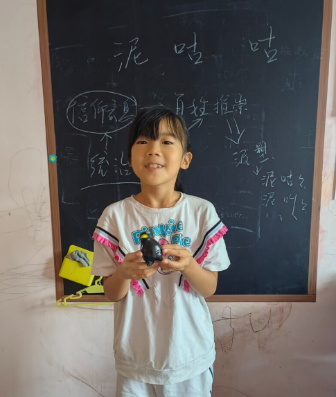 图为留守儿童在讲解自己对于泥咕咕的看法。本网通讯员王艺琳摄。