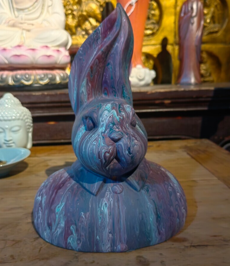 图为宋楷战对于泥咕咕的创新产品流体泥塑兔。本网通讯员王艺琳摄。