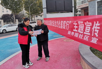 本网讯:(汪春 康明明)为进一步推进辖区“扫黄打非”工作顺利开展,打造阳光健康、积极向上的精神家园,11月13日下午,鹤壁市淇滨区黎阳路街道颖秀园社区在辖区开展“扫黄打非”宣传活动。