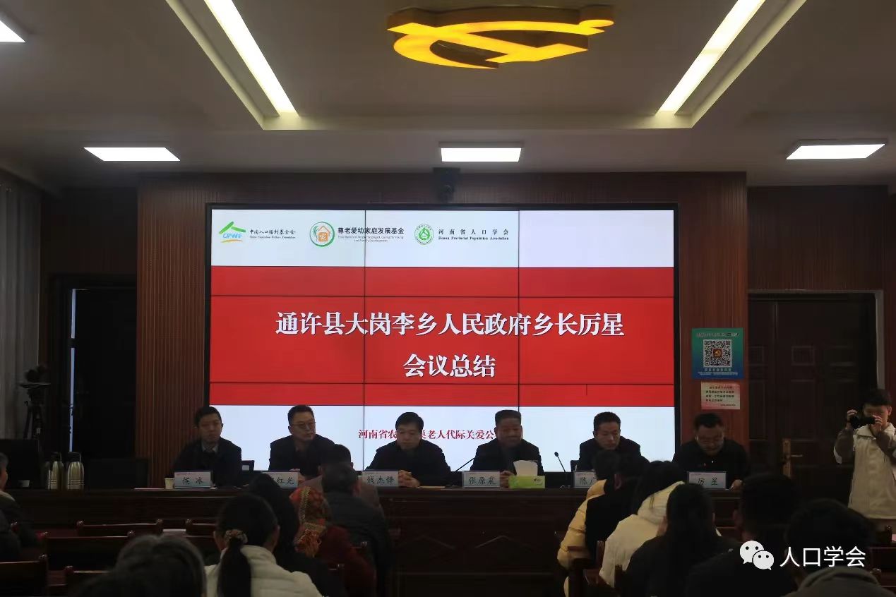 河南省人口学会召开“河南省农村空巢老人代际关爱公益项目”总结会 11月11日,中国人口福利基金会·尊老爱幼家庭发展基金“河南省农村空巢老人代际关爱公益项目”总结会议在通许县大岗李乡人民政府召开。河南省人口学会会长、河南卫生健康干部学院副院长张原震教授、通许县卫生健康委员会副主任职红光、通许县民政局副局长陈广忠、河南省人口学会办公室主任钱杰锋参加会议。会议由通许县大岗李乡人民政府乡长厉星主持。