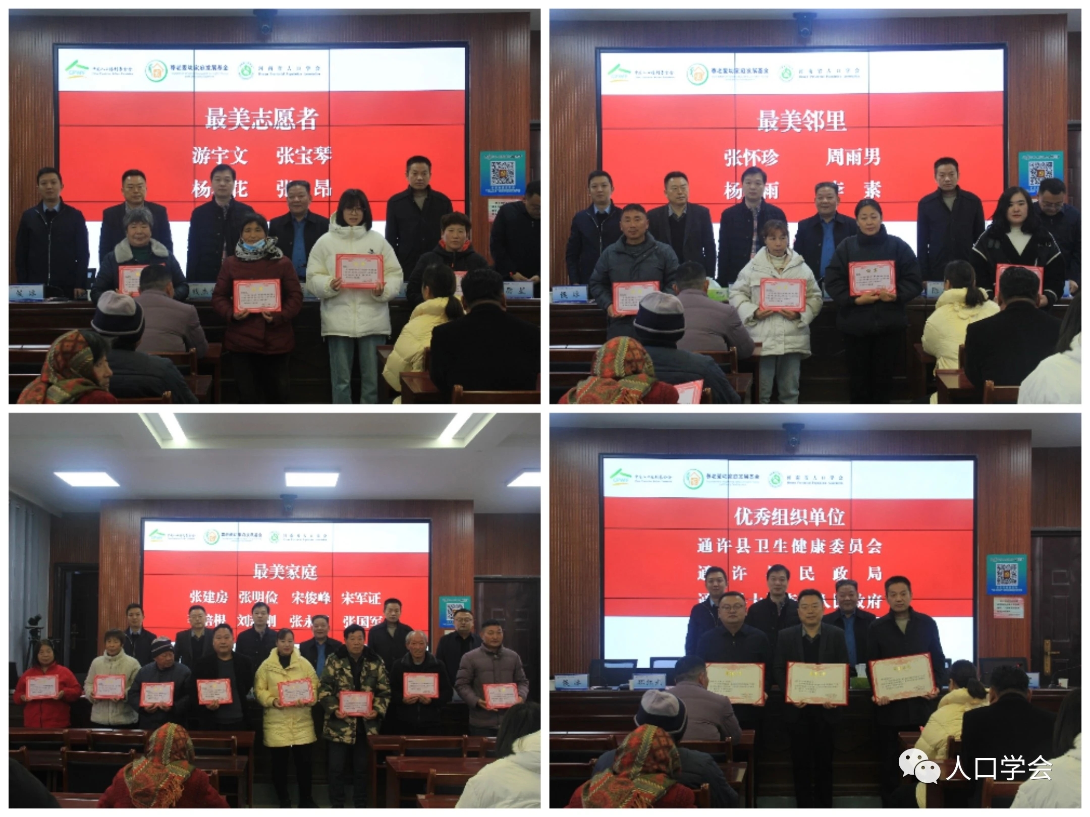 河南省人口学会办公室钱杰峰主任宣读了《河南省人口学会关于表彰项目优秀个人和优秀组织单位的表彰决定》。与会领导分别为最美家庭、最美邻里、最美志愿者和优秀组织单位颁发荣誉证书。