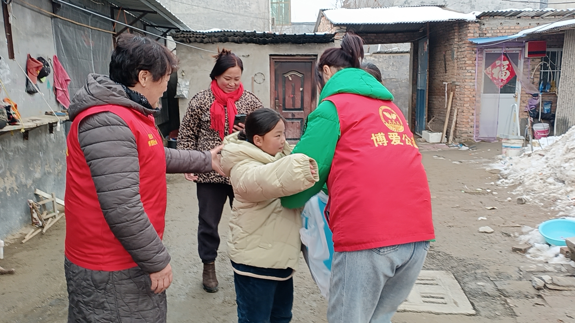 雨雪过后的隆冬早晨虽然显得格外寒冷,但这丝毫没有影响博爱志愿者们慰问困境家庭的热情。2月6日早上8点多,博爱志愿者就来到商字集合,9点出发下乡慰问。上午慰问了示范区贾寨镇贾堂村王艺霖、虞城县李老家乡杨木楼村陈慧丽两户困难学生家庭。王艺霖爸爸2015年因高空作业造成意外去世,2020年爷爷因患肝癌去世,家中还有一个弟弟、一个妹妹,家中生活及三人的上学费用仅靠她妈妈的打工收入来维持。陈慧莉妈妈去世多年,爸爸身体多病,患有脑积水腿脚行走不便,没有劳动能力。哥哥因精神疾病辍学在家。全家仅靠低保收入生活,无任何其它经济来源。每到一户困难学生家庭,杜全、李传坤都仔细询问孩子的学习情况和家庭生活情况。鼓励孩子们要自信、自立、自强,要好好学习,不辜负叔叔、阿姨这些爱心人士的期望,将来用成功回报社会,把爱心的接力棒传递下去。当李传坤看到王艺霖、陈慧莉几个孩子都非常阳光励志,学习成绩很好时,又高兴地给几个孩子发了过节红包。孩子及家长对爱心人士和志愿者都连声致谢。