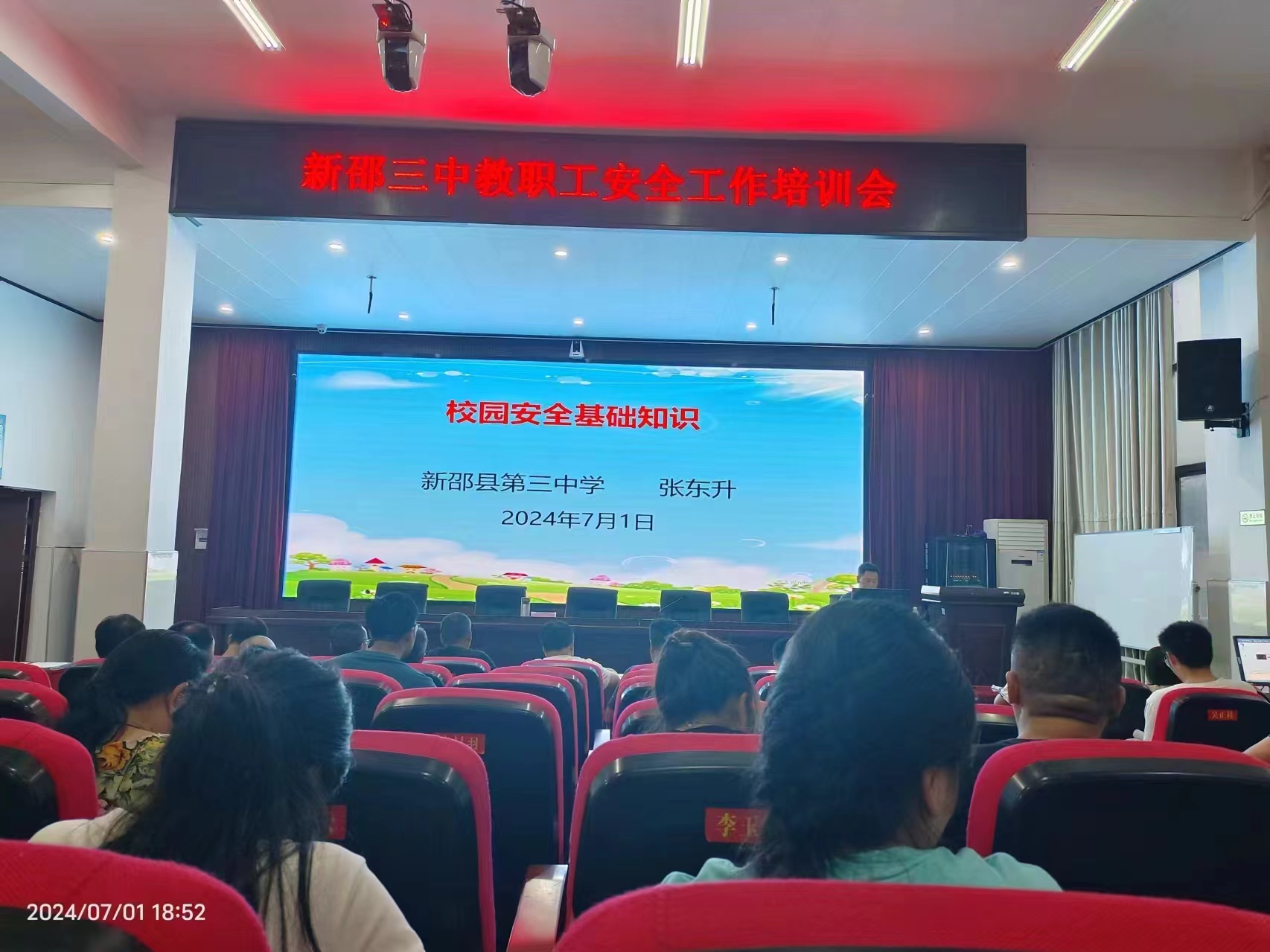 中国普法教育在线湖南讯(朱弥高 通讯员:孙明)7月1日晚,新邵三中开展了安全工作专题培训会,政教副校长张东升主讲,全体教职工参会。 此次培训包括“利剑护蕾行动防性侵安全”、“防溺水安全”、“防欺凌安全”、“心理健康教育”、“反电诈安全”、“交通安全”等内容。会上,张副校长通过政策解读、案例分析等方式,向大家介绍了各项安全的相关知识,强调了安全工作的重要性和必要性。 最后,他强调:“安全工作是学校工作的重点和基础。我们要始终把安全工作放在首位,加大安全宣传力度,强化安全责任意识,做好安全防护工作,共建平安校园,为学生的健康成长保驾护航。” (编辑:许文杰 责编:邓明平)