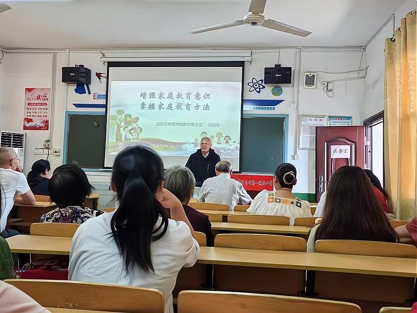 名师讲座,清晰理念 同时,教育局原教研室主任刘成龙在家长会上进行了“家庭教育”的完美讲座。其中,他提出了关于家庭教育方面的要求:第一要将家庭教育、社会教育与学校教育三者有机结合;第二从“亚圣”孟子、曾子等人物身上的故事入手,讲解一个人的成长脱离不了家庭教育;第三刘主任用马克思的名言“父母的责任就是对孩子的教育”说明父母的教育是一种潜移默化的方式,要重视父母对孩子的家庭教育;第四要了解孩子的内心世界,让孩子真真切切地感受父母的爱。