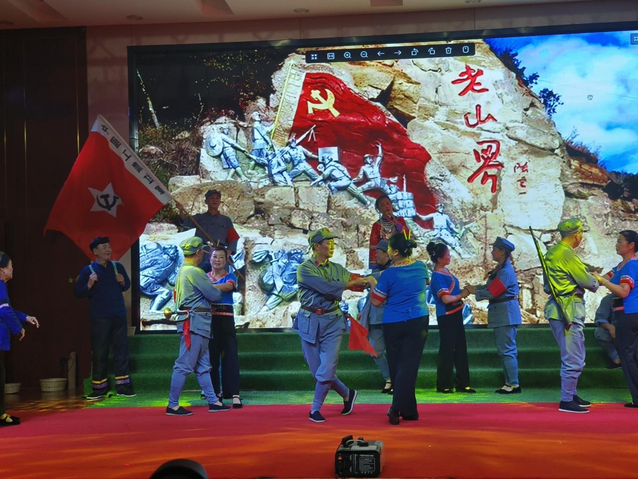 本网湖南城步讯(陈科帆)9 月 26 日晚,纪念红军长征过城步九十周年文艺晚会在湖南省城步苗族自治县儒林大酒店举行。本次晚会由城步苗族自治县委宣传部指导,县关心下一代工作委员会、县党史和地方志研究室、县文化旅游广电体育局、县老科技工作者协会主办,县夕阳红艺术团承办,是一场意义深远的缅怀红军丰功伟绩和弘扬革命精神的纪念活动。 情景剧《一条棉裤》(陈科帆摄影) 舞蹈《老山界》(陈科帆摄影) 晚会在《红军不怕远征难四渡赤水出奇兵》大合唱中拉开帷幕,激昂旋律瞬间将人们带回艰苦卓绝的长征岁月。接着,《花开中国》《一条棉裤》《映山红》《一张借条》《老山界》《一盏马灯》《五星红旗》《十送红军》等节目依次上演。情景剧《一条棉裤》、花鼓戏《一张借条》、歌舞《一盏马灯》生动演绎了红军在城步留下的军民鱼水深情故事,展现红军高尚品质与伟大情怀。歌舞《映山红》《五星红旗》表达对红军的敬仰和对祖国的热爱,小合唱《十送红军》则以优美旋律传递出军民间深厚情谊。最后,晚会在《歌唱祖国》大合唱中圆满落幕,全场观众起立,共同唱响对祖国的热爱与祝福。 花鼓戏《一张借条》(陈科帆摄影) 土地革命时期,城步是红军长征进入邵阳的第一县,红一方面军、红六军团、红七军先后三次经过城步。1934 年 9 月 8 日,任弼时、肖克、王震率领红六军从广西资源车田进入城步,途经多个乡镇后入绥宁转通道。同年 12 月 5 日,中央主力红军从广西资源进入城步杨梅坳,途经汀坪、儒林、丹口、长安营等乡镇入绥宁转通道。红军在城步进行七次大小战斗,粉碎国民党围追堵截,惩办大批土豪劣绅,广泛开展政治宣传,唤醒和提高城步民众土地革命觉悟。红军长征在城步历史上书写了光辉一页,为苗乡红色文化增添了绚丽篇章。 舞蹈《映山红》(陈科帆摄影) 纪念红军长征过城步九十周年,是历史情怀的体现,更是对长征精神的弘扬与新时代奋斗力量的激发。通过此次活动,人们深刻理解长征精神内涵,牢固树立坚定不移、百折不挠的理想信念。相信在长征精神激励下,城步人民将以饱满热情和昂扬斗志,为实现中华民族伟大复兴的中国梦而努力奋斗。(编辑:张芳玲) 微信扫一扫,阅读更方便^_^ |