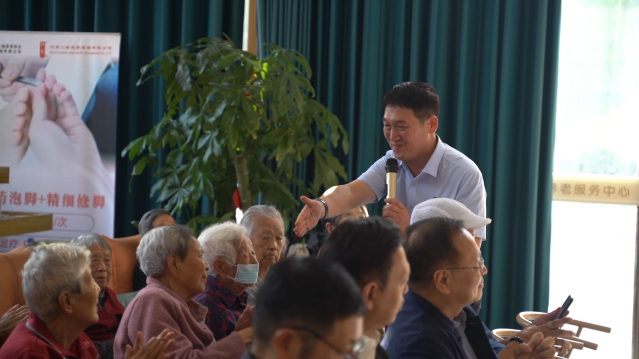 活动当天,阳光明媚,福华颐养院内洋溢着节日的喜庆氛围。仲景控股的代表们与福华颐养院的工作人员及老人们欢聚一堂,共同庆祝这一特殊的节日。首先,福华颐养院负责人、福华健康产业(河南)有限公司总经理杨捷先生致欢迎词。仲景控股CEO萧海锋先生在欢迎仪式上发表了热情洋溢的讲话,他深情地表示,老年人是社会的宝贵财富,他们的幸福与安康是社会和谐发展的重要体现。仲景控股作为社会的一份子,有责任也有义务为老年人创造一个更加温馨、舒适的生活环境,让他们在晚年生活中享受到更多的关爱与尊重。