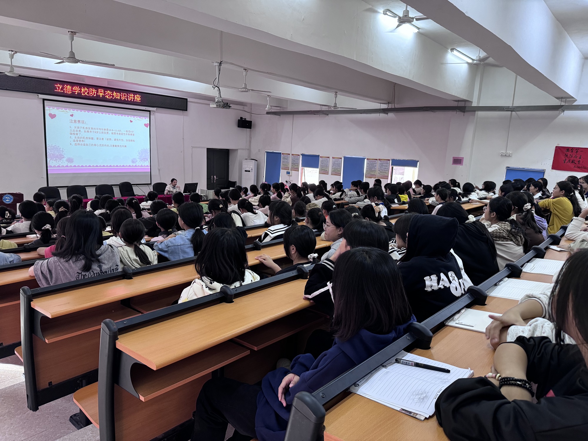 守护青春 筑梦未来 ——宁远县立德学校举办女生青春期健康教育讲座 中国普法教育在线湖南永州讯(邓明平 通讯员:刘玲、黄华军、吕立志)为加强未成年人思想健康教育,关注女生的心理健康和生理发展,提高女生对性侵害的认识和防范意识,近日,在学校党支部、政工处的统筹安排下,宁远县立德学校举办了一场预防性侵害安全教育暨女生生理心理健康讲座。 据了解,本次青春期健康讲座主要围绕女生青春期的身体变化、心理变化、月经知识、月经卫生、早恋的危害及如何预防性侵害等多个方面展开。讲座上,刘玲老师结合直观而丰富的图文课件,向参会女生们详细介绍了青春期女生身体发育和心理发展特点,认真讲解了青春期女生生理卫生知识和心理发展规律。 在月经知识和月经卫生方面,刘玲老师详细阐释了月经的周期、持续时间以及卫生巾的处理方法。她强调,月经是女性正常的生理现象,不必因此感到羞耻或自卑,她提醒女生们要注意月经期间的个人卫生,选择信得过的卫生用品,避免细菌感染;针对早恋的危害,刘老师指出,早恋不仅会影响学习成绩,还可能导致身心健康受到损害,她提醒女生们要正确处理与异性的关系,学会拒绝不合适的表白,保持坦然交往、公开交往的态度,鼓励女生在遇到困惑时,要及时与家长和老师沟通;在网络交友和预防性侵害方面,刘老师提醒同学们要时刻保持警惕,不要轻易相信陌生人的话语,更不要随意透露个人信息。 此外,刘玲老师还通过多媒体课件、短视频等向与会女生讲解了如何区分自己身体的“红绿灯”区等知识,引导学生清楚预防侵害的重要性,手把手传授其防范和应对性侵害行为的主要措施和方法。最后,刘玲老师像妈妈一样,寄予了孩子们期望,希望大家在成长中自爱、自强、自信、自立、自律,报告厅内雷鸣般的掌声此起彼伏…… 本次讲座,不仅提升了广大女生对青春期的认知,增强了她们的自我保护意识,得到了学校领导及家长们的一致好评,参会女生们纷纷表示,一定积极运用所学知识,树立正确的健康观念,为自己的身心健康和未来发展打下坚实的基础。 (编辑:许文杰 责编:邓明平)