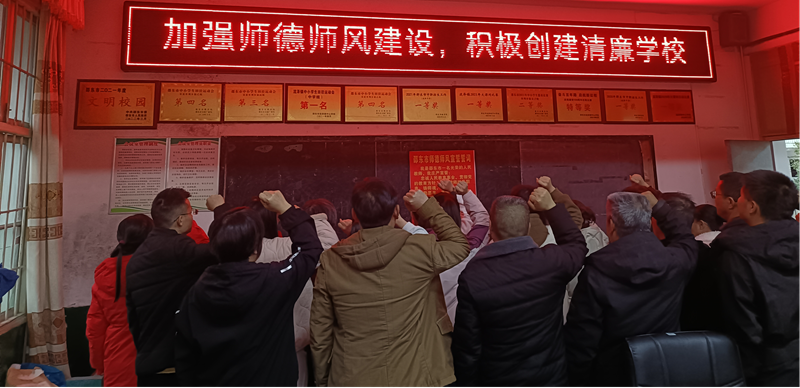 该校高度重视师德师风建设工作,组织开展加强师德师风建设,积极创建清廉学校专题会,组织教师深入学习《中小学生行为规范二十条》及《“吃亏”教师论》,引导教师坚守职业道德,以德立身,以德立学,以德施教,以德育德,全体教师参与落实好学困生的一对一地帮扶工作;同时做好校务会成员的谈心谈话工作,校领导始终保持高度警惕,严格律己,精准履职担责,廉洁从教,激发教师干事热情;此外,学校还建立了健全监督机制,通过建立家委会、微信群等实现家长、学生和社会多方面对师德师风、清廉校园的监督,及时发现并纠正存在的问题,确保教师队伍的纯洁性。
