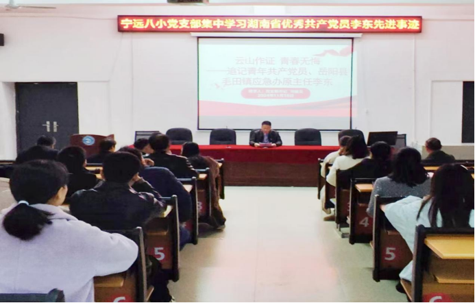 ——宁远县第八完全小学党支部开展“学习先进模范,争做优秀党员”主题活动 中国普法教育在线湖南永州讯(邓明平 通讯员:周小玲、黄华军、王依琳)为认真落实湖南省委组织部、宣传部《关于开展向“湖南省优秀共产党员”李东同志学习的通知》,充分发挥先进典型示范引领作用,提升党员精神风貌,11月22日,宁远县第八完全小学党支部在学校报告厅开展了“学习先进模范,争做优秀党员”主题活动。 党支部书记、校长刘超云详细介绍了李东同志先进事迹,对他在防汛救灾中英勇牺牲的壮举表达了高度的敬佩之情。他强调,要在全校广泛宣传李东同志的事迹,激励广大党员同志学习其无私奉献、勇于担当的精神。 随后,学校党支部宣传委员黄华军给全体党员呈上了一堂微党课《榜样如星火,照亮新征程》,并组织全体党员认真观看党员教育片《云山作证,青春无悔——追记青年共产党员、岳阳县毛田镇应急办原主任李东》。学习活动中,大家感触颇深,就李东同志英雄事迹交流了感想,大家纷纷表示,一定时刻牢记党员的职责与使命,坚持“情为民所系,利为民所谋“,以爱育人,努力争做优秀共产党员。最后,刘超云同志鼓励党员教师们以“实的作风、严的标准”要求自己,将理论与实践相结合,不断提高党性修养,坚定理想信念。 此次学习活动,不仅让全体党员教师接受了一次深刻的思想教育、精神激励和触及灵魂的思想洗礼,还充分激发了广大党员挖掘身边楷模、学习先锋模范精神的热情。学校党支部书记、校长刘超云表示,学校将继续推动先锋模范精神走深走实,坚持不懈用习近平新时代中国特色社会主义思想铸魂育人,为学校的高质量发展提供坚强保障。 (编辑:许文杰 责编:邓明平) 微信扫一扫,阅读更方便^_^ |